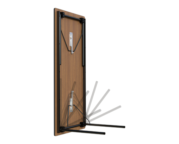Masamız yüksek kaliteli MDF lam tabla ile üretilmiş olup, dayanıklı metal veya ahşap çerçeveye sahiptir. Elektrostatik boyalı katlanır ayaklar, hem estetik bir görünüm sunar hem de uzun ömürlü kullanım sağlar. T kanallı kauçuk veya özel alüminyum kenarlar, masanın hem güvenli hem de modern bir tasarımla tamamlanmasını sağlar.