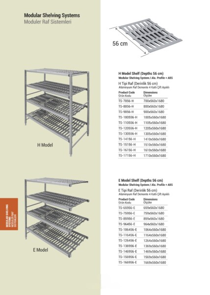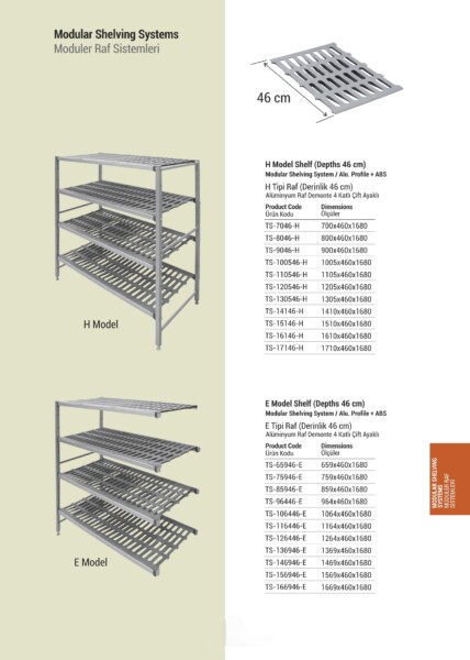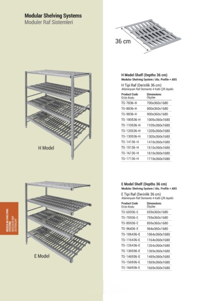 Raf tablaları ise ABS malzemeden üretilmiştir ve yüksek hijyen gerektiren alanlar için uygundur. 90°C’ye kadar bulaşık makinesinde yıkanabilir olması, hijyen standartlarını maksimum seviyeye çıkarır.