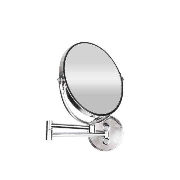 • Product Type: Wall-mounted, articulated, double-sided magnifying makeup mirror with round rosette