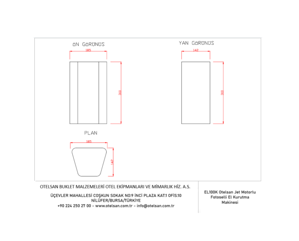 EL100K Otelsan Jet Motorlu Fotoselli El Kurutma Makinesi